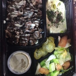I called in to order to-go, you can order by phone, online, or in person. I ordered a falafel veggie platter, they said it'd take 10-15 minutes maximum to be ready and the order was ready when I arrived. The platter came with tahini sauce, muttabal, 3 dolma (stuffed grape leaves), 6 falafels, and tabouleh. There was one thin corner of pita bread under the falafel, and 4 thick corners/pieces of pita bread provided on the side. I'm not a fan of parsley so I didn't like the tabouleh (which is typical for me) but the rest of it was good; I thought the tahini sauce, muttabal, and falafel were all tasty and well-seasoned. My partner had gotten the chicken shawerma plate and they said theirs was quite good as well.